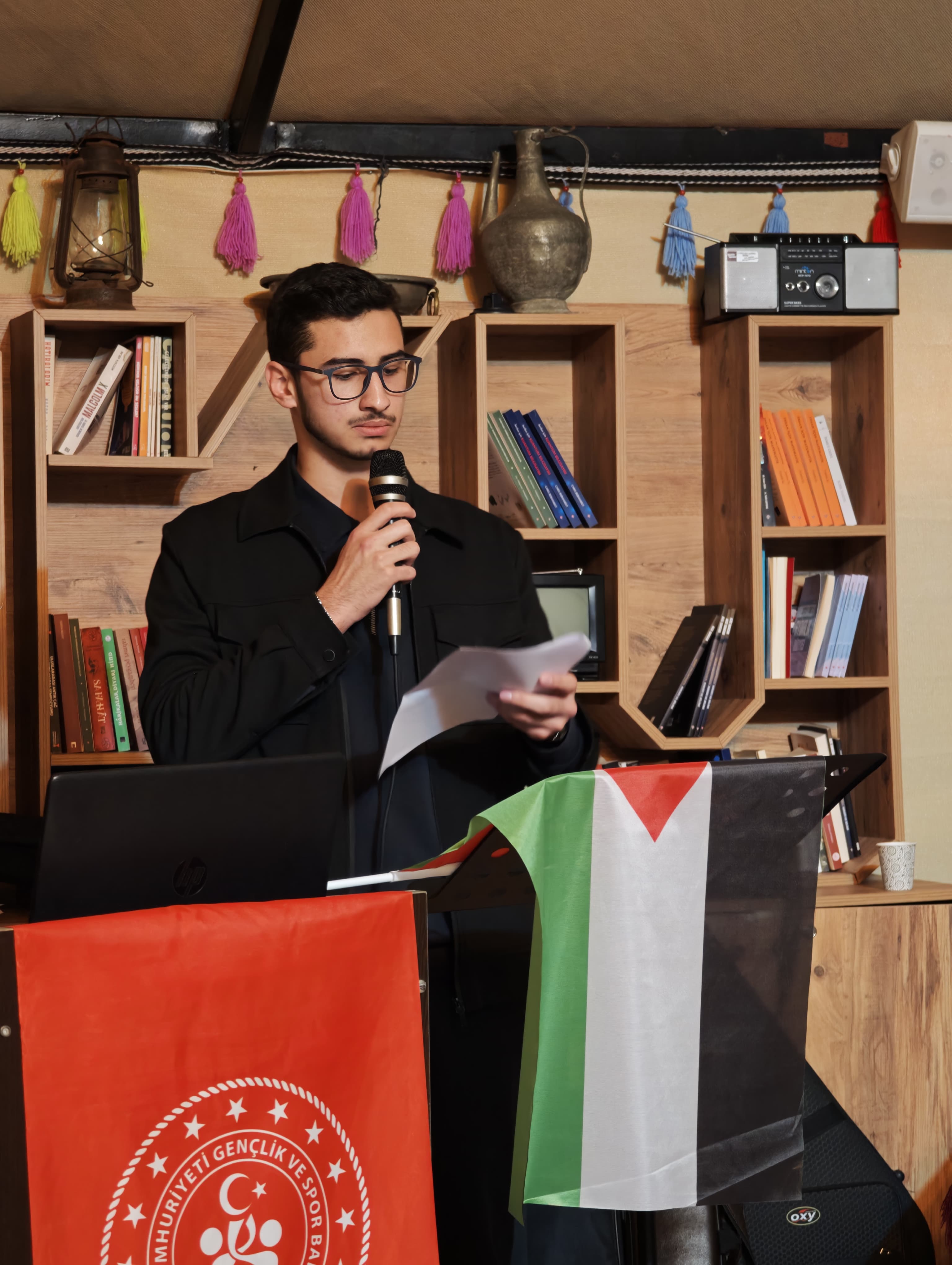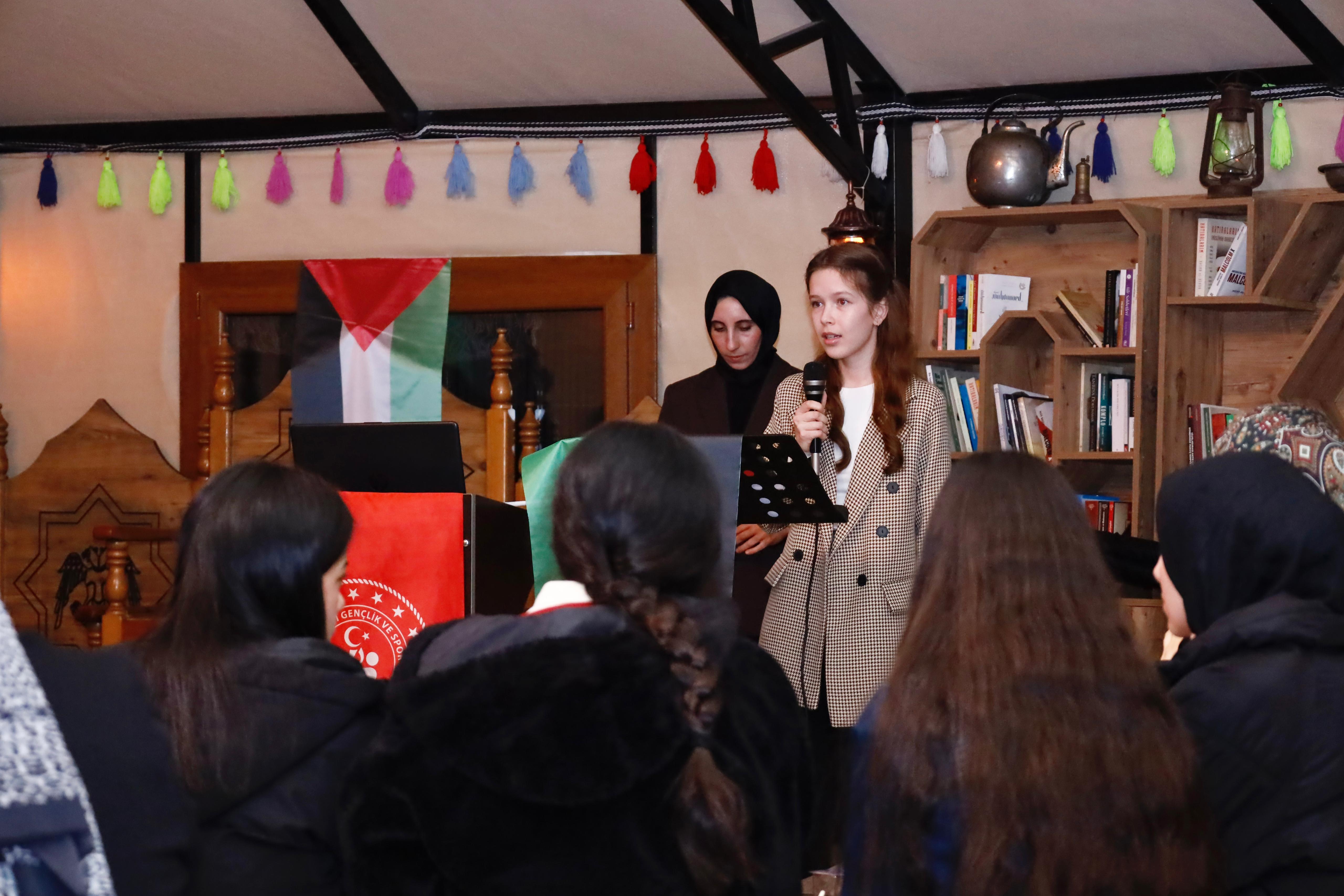 Programın ilk yarısında KSÜ öğrencileri ve Sosyal Bilimler Lisesi öğrencileri Filistin temalı şiirleri dokunaklı bir şekilde okudular. Kuşatmalarda şehit olan Filistinli şairlerin şiirleriyle birlikte hüzünlü ama ilham veren hayat hikayelerinden de bahsedildi.